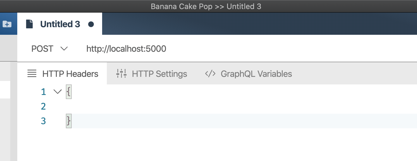 Banana Cake Pop will open with an empty tab. In the address bar type in the URL of our GraphQL server http://localhost:5000 and hit enter.