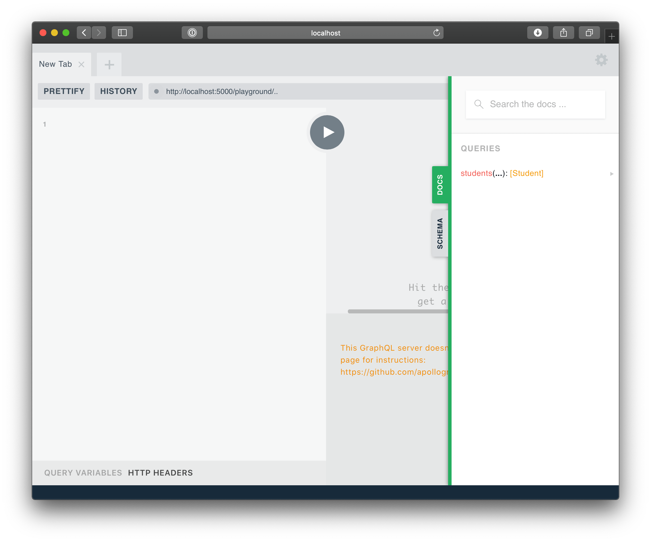 But you can also opt for Playground and host a simple GraphQL IDE as a middleware with the server. If you want to use playground add the following package to the project:
