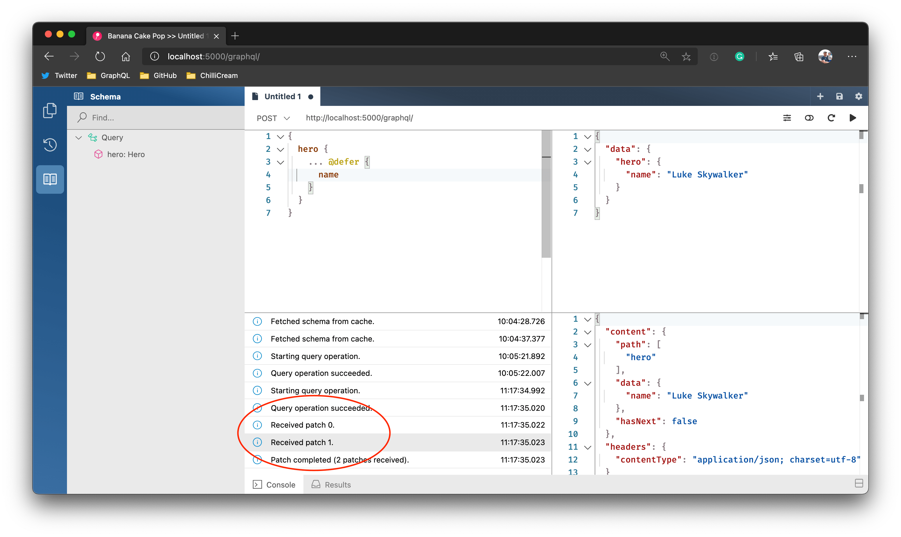 Hot Chocolate Server 11 supports defer. This feature is experimental since the spec still changes, and we will keep it up to date. We have not yet included stream, which will follow with 11.1, probably at the end of January. You do not need to specify anything in your server to use defer; it will just work. You can try out defer with Banana Cake Pop, which will show you exactly how the patches come in.